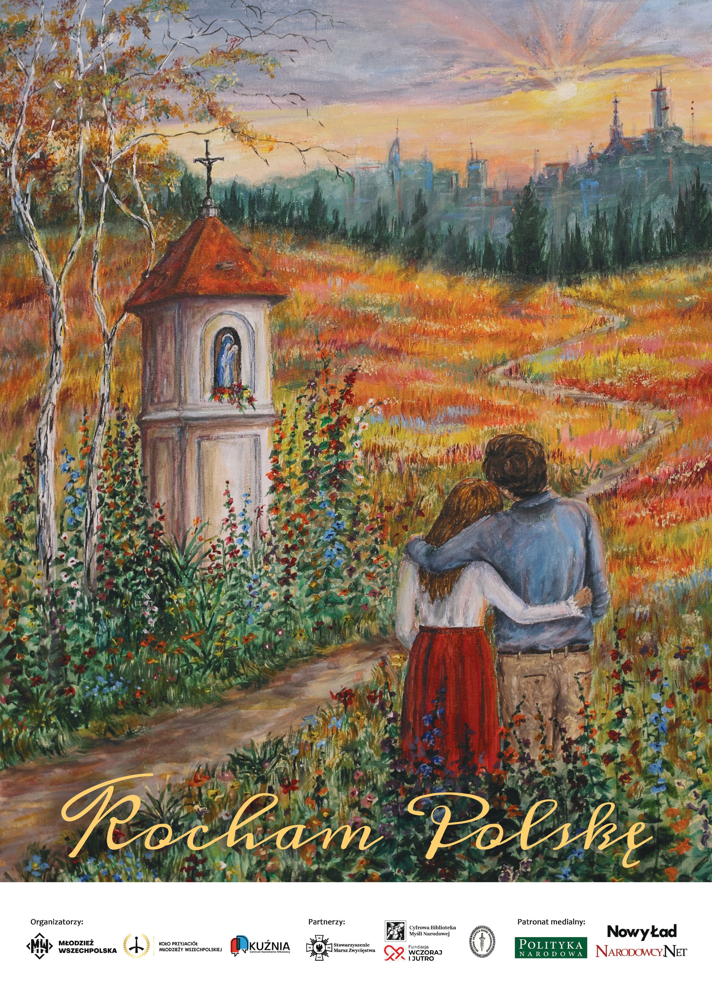Ten plakat zachęca do miłości wobec Ojczyzny rozumianej nie jako deklaracja na pokaz, lecz jako zachwyt i zaduma - nad ojczystą przyrodą, kulturą i wiarą, nad tym, co przekazywali nam dziadkowie, co wyrasta z pól, dróg i wiejskich kapliczek, i co wciąż potrafi w człowieku obudzić spokój. To przypomnienie, że patriotyzm może mieć również postać cichej wdzięczności: za krajobraz, za tradycję, za sacrum obecne w codzienności.