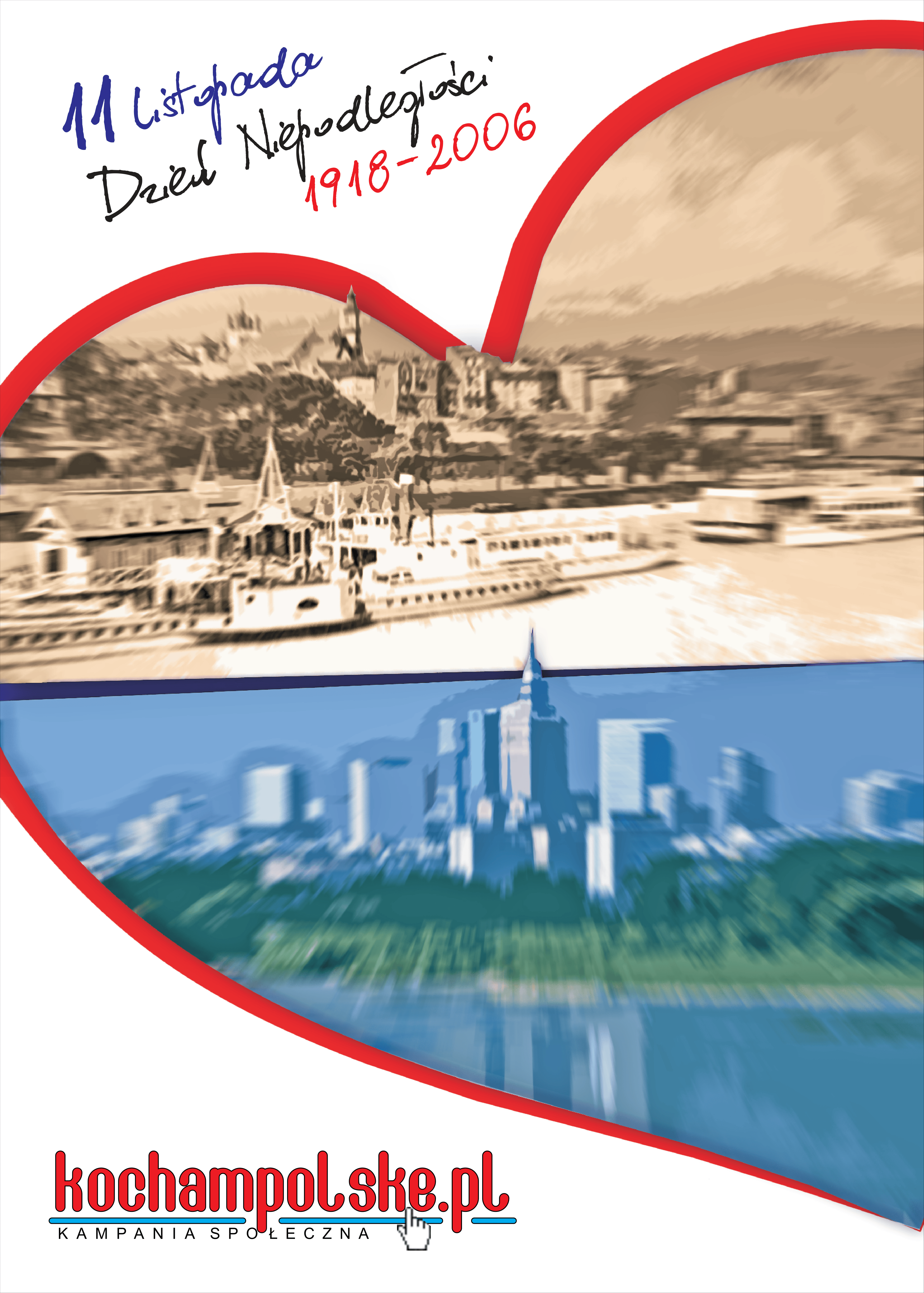 W plakacie jesiennym , stworzonym na Święto Niepodległości przedstawiony został następujący obraz: w sercu obrysowanym biało-czerwonym konturem zestawiliśmy dwie perspektywy: Polskę historyczną (w sepii, z jej dziedzictwem i pamięcią) oraz Polskę współczesną (nowoczesną, dynamiczną, patrzącą w przyszłość). Przekaz był jasny: niepodległość to ciągłość - most między tym, co odziedziczyliśmy, a tym, co mamy obowiązek budować dalej.